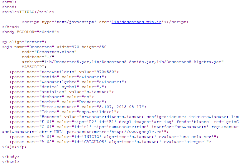 Nota importante: Todas estas etiquetas las crea e introduce en la página el editor de Descartes automáticamente.