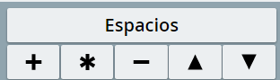 En segundo lugar, trataremos como podemos añadir, borrar o duplicar un espacio, mediante el menú de la izquierda del panel de configuración de espacios de la escena. Con el control + se añade un espacio nuevo, con el botón - se borra el espacio de la lista seleccionado y el * se duplica el espacio de la lista seleccionado. Las flechas ascendente y descendente permiten mover hacia arriba o hacia abajo el espacio marcado de la lista. Conviene recordar que los espacios se dibujan en la escena en el orden en el que se muestran en la lista de espacios. De forma que el último que se escribe es el último que se dibuja, apareciendo encima de todos los demás. El botón Espacios permite ver el código de programación de los distintos espacios definidos.