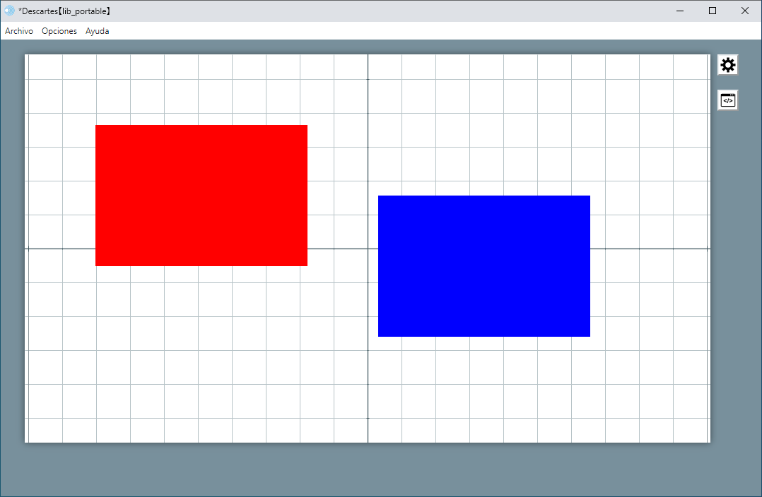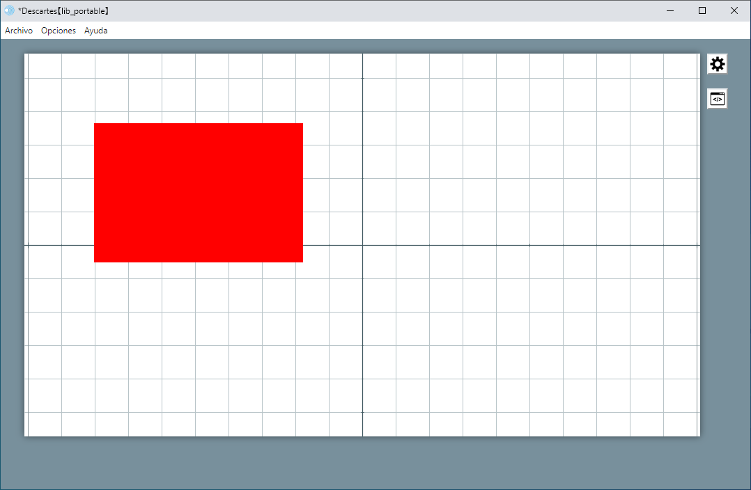 Inicialmente y por defecto las escenas nuevas que se abren en el editor de escenas contienen un único espacio rectangular en dos dimensiones que ocupa toda la escena con una rejilla de coordenadas, llamado E1 (todos los espacios deben llevar un nombre).