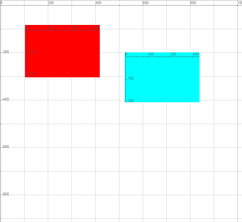 El rectángulo que introducimos en la siguiente escena está posicionado en coordenadas absolutas.