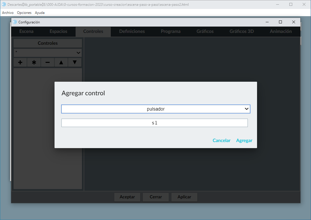 El procedimiento para introducir un control en una escena es similar al empleado para introducir imágenes o textos.