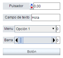 Tipo de interfaz gráfica del control numérico. Las opciones son: pulsador, campo de texto, menú (desplegable), barra (de desplazamiento) y botón.