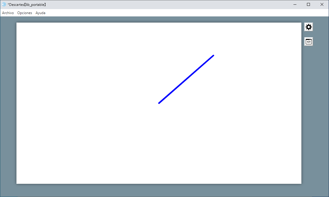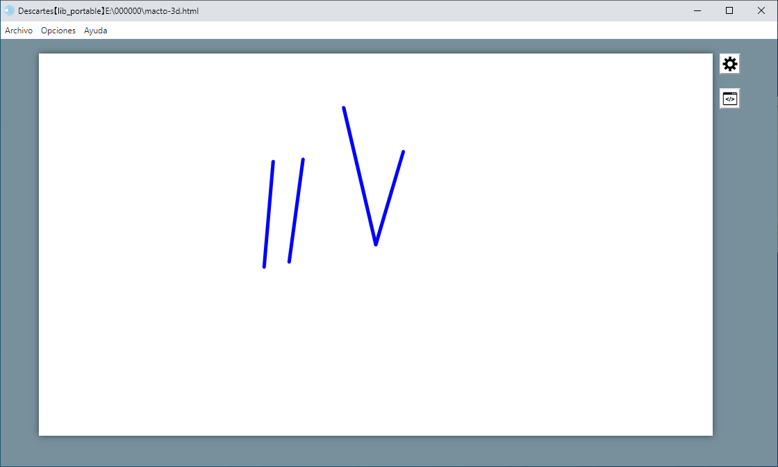 a) Se crea una escena con un único espacio 3D que puede tener elementos gráficos 3D y elementos de programación en un sólo espacio 3D. Por ejemplo, un segmento azul en un espacio 3D.