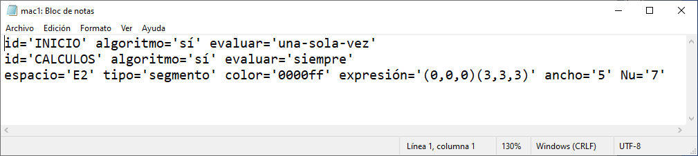 b) En el editor de Descartes, en el menú Archivo, Exportar como macro de Descartes. En nuestro ejemplo lo grabamos con el nombre mac1.txt. Su código es el siguiente: