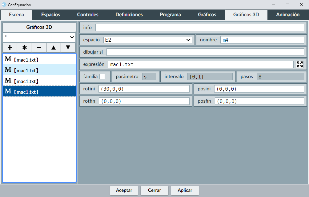 Nota. Lo comentado para macros 2D, relativo a su uso en escenas en el equipo local es válido para macros 3D.