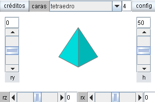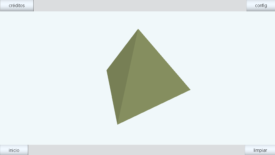 Por ejemplo, para introducir un tetraedro, el menú de configuración del mismo y la imagen de la escena generada sería: