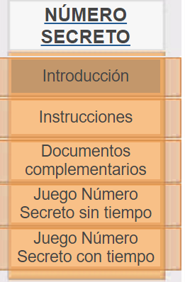 Hemos realizado un índice que hace las veces de menú de navegación por la web. Su estructura es la siguiente: introducción, instrucciones o reglas del juego, documentos complementarios, juego del "Número secreto" sin tiempo y juego del "Número secreto" con tiempo.