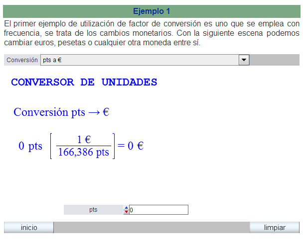 Las escenas elaboradas para la unidad de factores de conversión se integran en la web como escenas abiertas que se visualizan y utilizan directamente en las páginas en las que están insertadas (copiado el código de la escena e insertándolo en el lugar adecuado del código de la página web y adjuntado el fichero descartes-min.js).