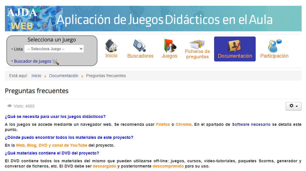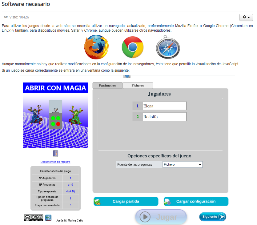 - Documentación para el uso de juegos: guía de uso, software necesario, ejemplos de juegos, inserción en páginas web.
