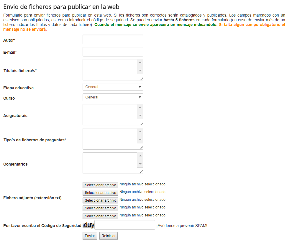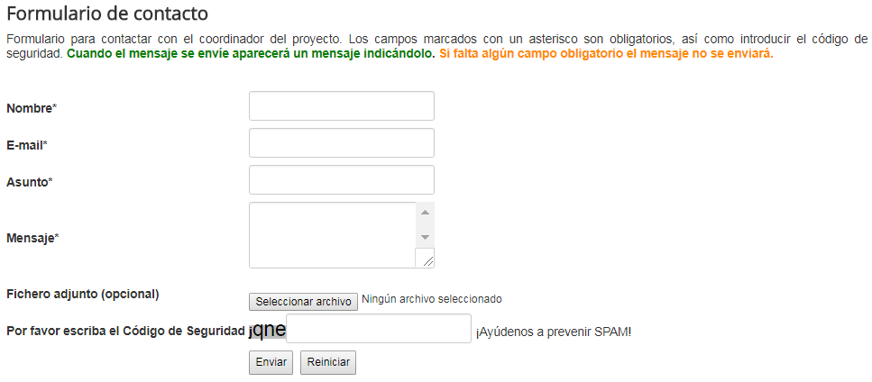 La web cuenta con distintos apartados para participar y contactar, tales como: contacto, envío de ficheros, blog y canal de YouTube.