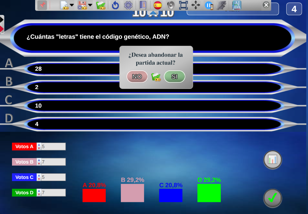 del menú superior desplegable, y se mostrará un mensaje de aviso para confirmar si se desea abandonar la partida actual.