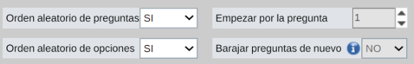 Orden aleatorio de preguntas. Indica si el orden en el que se presentan las preguntas de fichero es aleatorio o en el que se encuentra en el fichero.