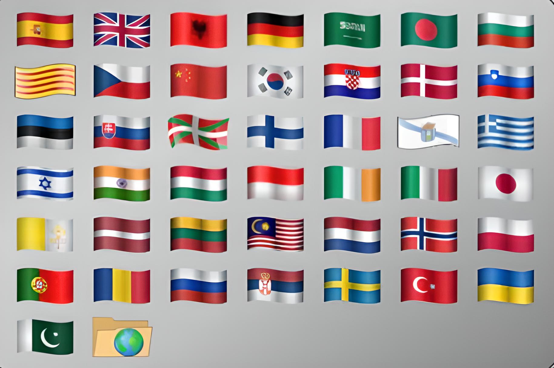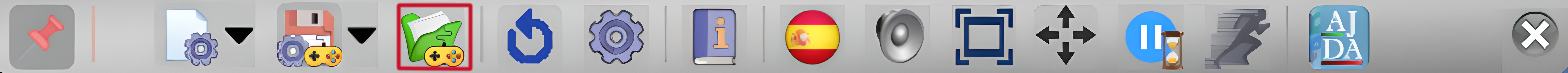 Abre el submenú de selección de idioma de la interfaz del juego (Interfaz traductora). Pulsando en la bandera se cambia de inmediato el idioma de la interfaz. Si juego se utiliza en local, el cambio de idioma debe realizarse buscando el fichero de idioma pulsando en el icono carpeta con la bola del mundo que hay al final de las banderas y seleccionándolo de la carpeta contenidos/interfaz que se encuentra que cada juego.