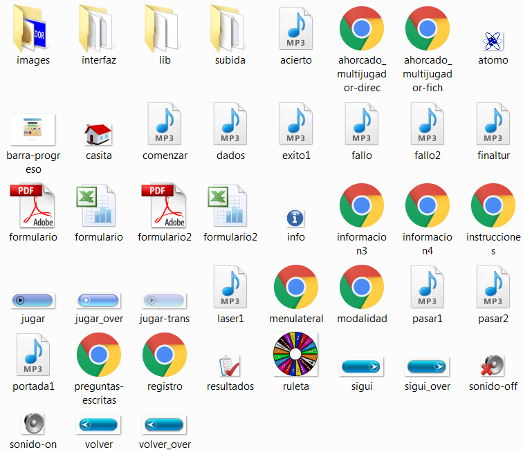 Después abrimos la carpeta del juego "AHORCADO MULTIJUGADOR" llamada jug-ahorcado_multijugador veremos el contenido de la misma.