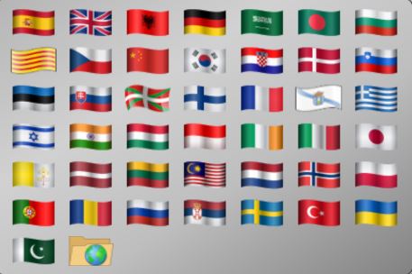 Como ya se ha comenzado, los juegos de AJDA disponen de la posibilidad de cambiar el idioma en el que se presentan. Esto se puede hacer en cualquier momento del juego a través del control de idioma del menú superior desplegable, el cuál abrirá un submenú con las banderas correspondientes a los diferentes idiomas.