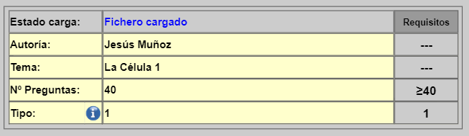 En este ejemplo, el juego necesita un mínimo de 40 preguntas y el fichero que se ha cargado contiene 40, por tanto, la partida podrá comenzar y las preguntas elegidas serán de entre las 40 cuestiones del fichero.
