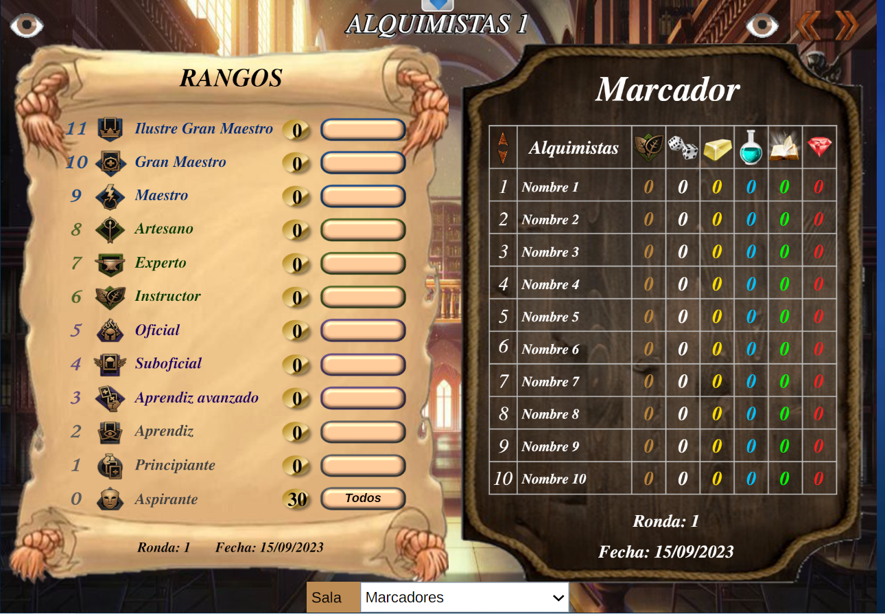 Juegos "Alquimistas 1 y 2". Se trata de un juego de carácter transversal, que puede emplearse junto con otros juegos y que cuenta con muchos elementos de interés: marcadores, rangos, cartas, gemas, tiradas mágicas, cofres...