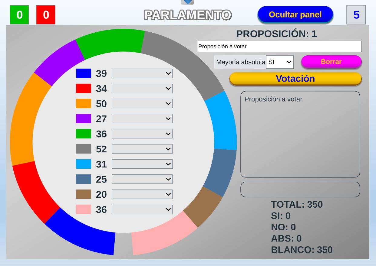 En esta actividad, el aula se convierte en un "parlamento", donde se aúna conocimiento, debate, votaciones, consenso, propuestas... y que ha dado muy buenos resultados a la hora de tratar en clase cualquier tema de interés de una forma diferente, generando dinámicas muy positivas. Los alumnos se convierten en "parlamentarios" y se pueden integrar en uno de los diez "grupos o partidos" existentes.